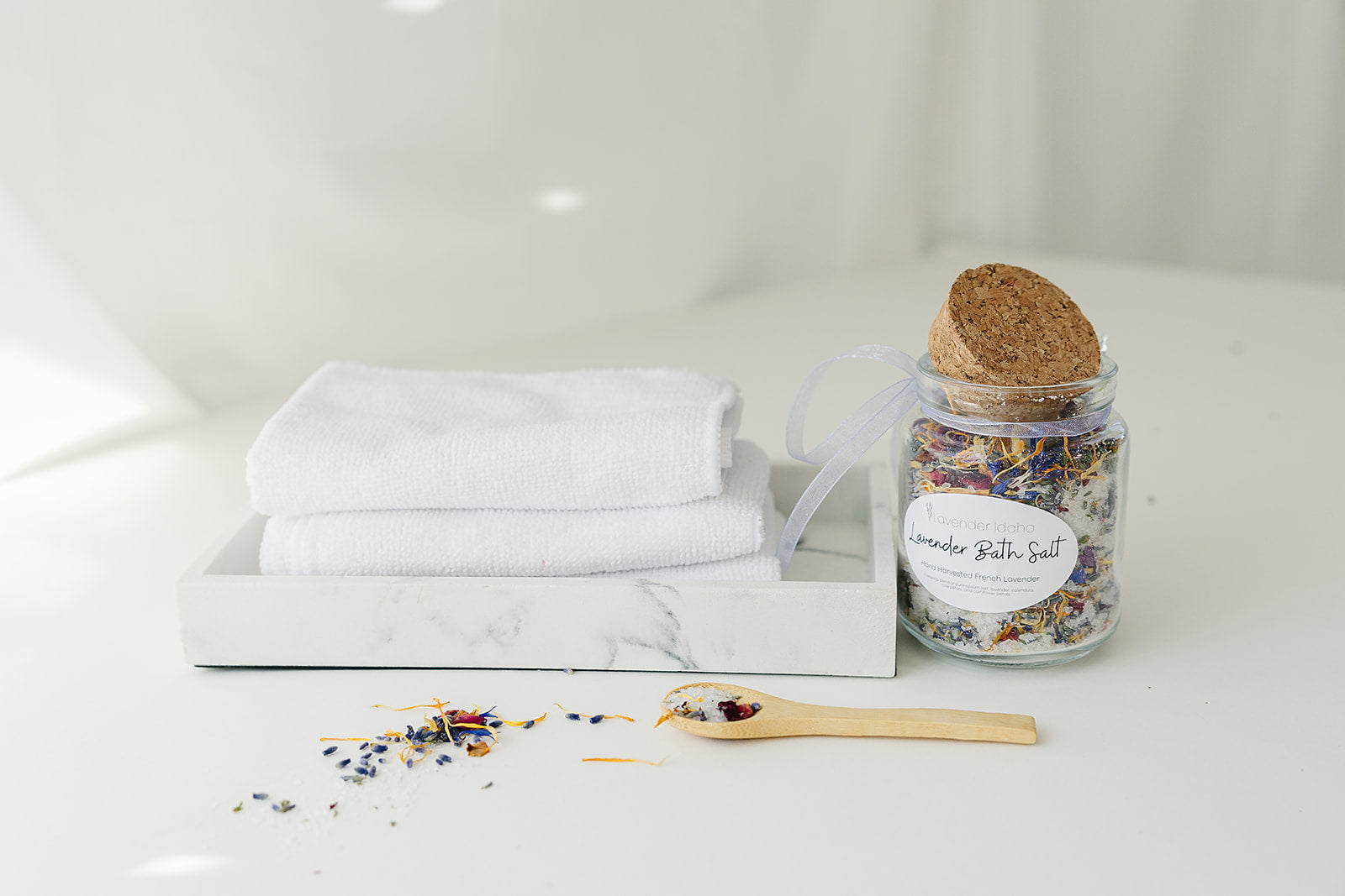 Discover serenity in every soak with our Small Batch Organic Lavender Bath Salt. Crafted with care, this blend of organic lavender and premium salts creates a blissful retreat for your senses. Unwind, relax, and rejuvenate in the soothing embrace of lavender-infused luxury. Our lavender is grown on our family farm based in Rigby, Idaho. 8 Ounces Pure epsom salt, organic lavender, calendula, rose petals, and cornflower petals.